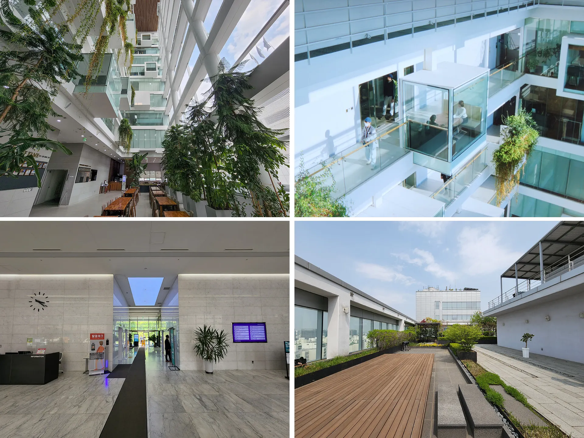 당일 이용 가능 B4 ~ 13층 중견 사옥 층고가 높은 카페테리아 채광 좋은 외부 복도 사무실, 연구실, 대표실 등 보안 공간과 연계 사용 가능